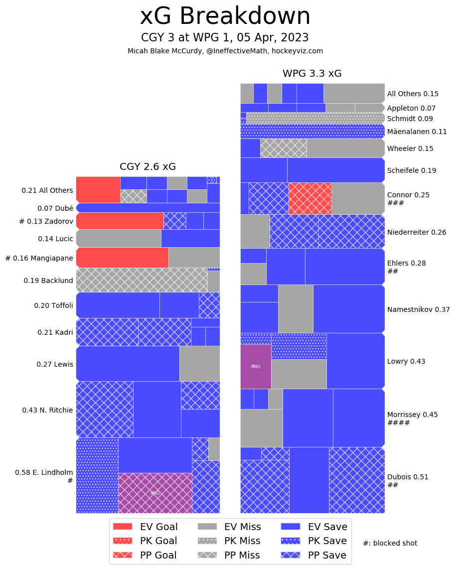 (Stats compiled from Naturalstattrick.com // Game Score from Hockeystatcards.com // xG and Under Pressure charts from HockeyViz.com // Game Flow and Shot Heatmap from NaturalStatTrick.com)