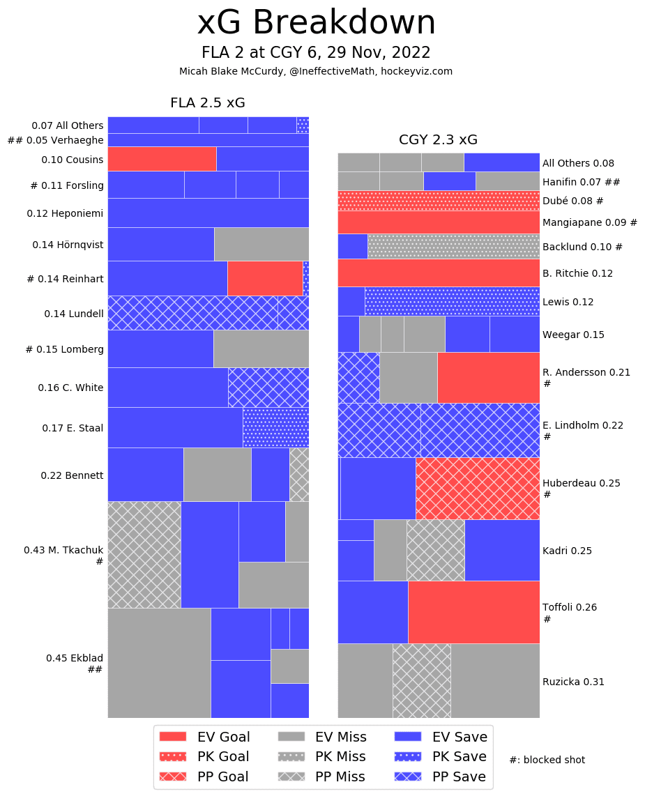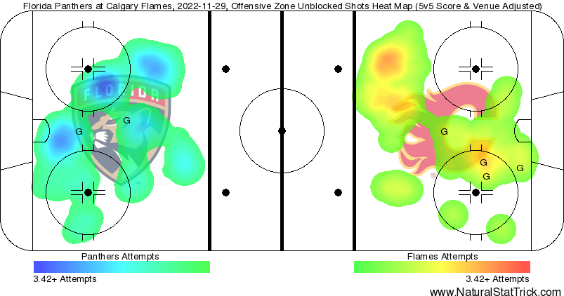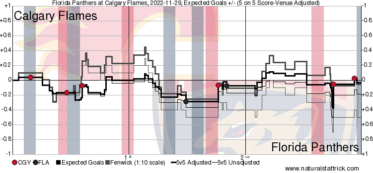 Corsi Clown – Elias Lindholm (31.85%) and the Flames top players did see a lot of special teams tonight. As such I would say having a lower possession rating but still an even quality of chance rating was doing the right things. Some players did have off nights, but it wasn’t enough to cause Calgary to blow it. The important thing here was Calgary having a line stand out and clearly control play against the Panthers. Having your top 4 D perform like top 4 D is always a help as well.