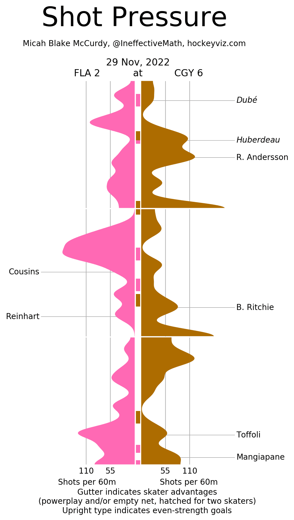 (Stats compiled from Naturalstattrick.com // Game Score from Hockeystatcards.com // xG and Under Pressure charts from HockeyViz.com // Game Flow and Shot Heatmap from NaturalStatTrick.com)