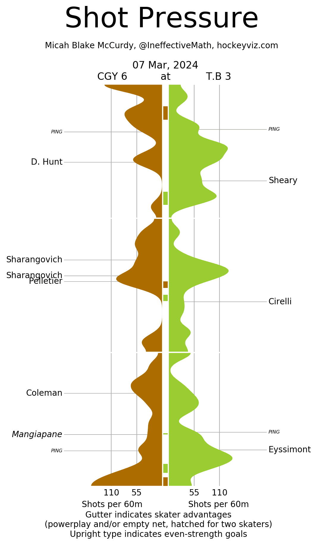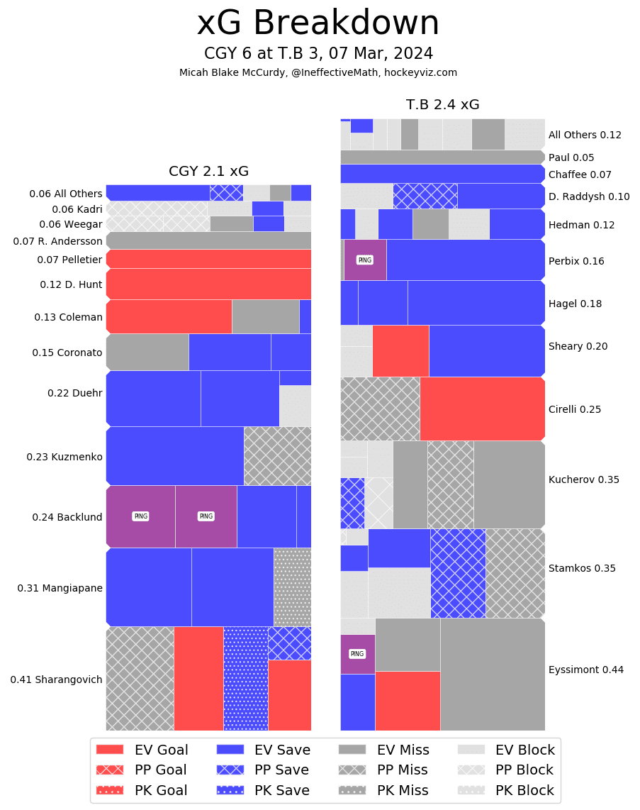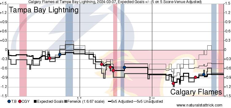 Taken By Chance – One last batch of flowers for Pachal (83.29 SCF% // 79.40 HDCF%) whose play helped lead to 10 high danger chances for the group – all at 5v5. Shoutout to the line that started the pressure from the first period, as usual Mangiapane (74.67% // 83.83%) and his linemates who only saw 1 high danger chance against. Well, Backlund (68.97% // 72.16%) saw a second one against, but he also is out there in more dangerous situations more often. Nobody really saw a floodgate of bad looks against – Tampa is going to find some dangerous looks no matter what you do – limiting them like Calgary was able to do turned out to be very effective.