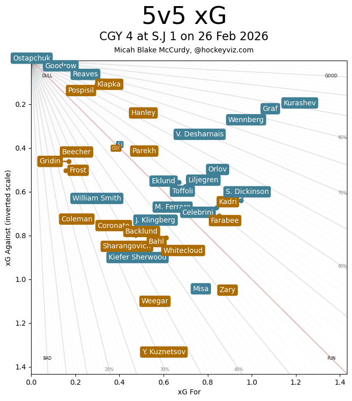 (Stats compiled from Naturalstattrick.com // Game Score from Hockeystatcards.com // xG and Under Pressure charts from HockeyViz.com // Game Flow and Shot Heatmap from NaturalStatTrick.com)