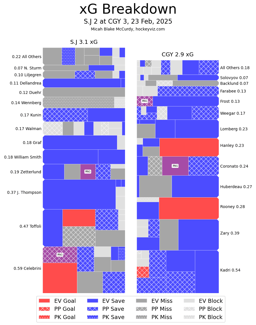 Taken By Chance – Rasmus Andersson (42.75 SCF% || 40.39 HDCF%) was back from the 4 Nations Face-Off and up to his usual ways. Still one of the best at the team in the offensive zone but has to find some way to limit giving up seven high danger chances at 5v5. I thought Solovyov did a great job physically and many of the leaks came from Andersson’s side of the ice – they need more from him on the upcoming road trip. The entire team was struggling to protect the front of the net before the break – last night was not any different. More support from wingers, better box outs from the defenceman, and the centres can’t lose their guy.