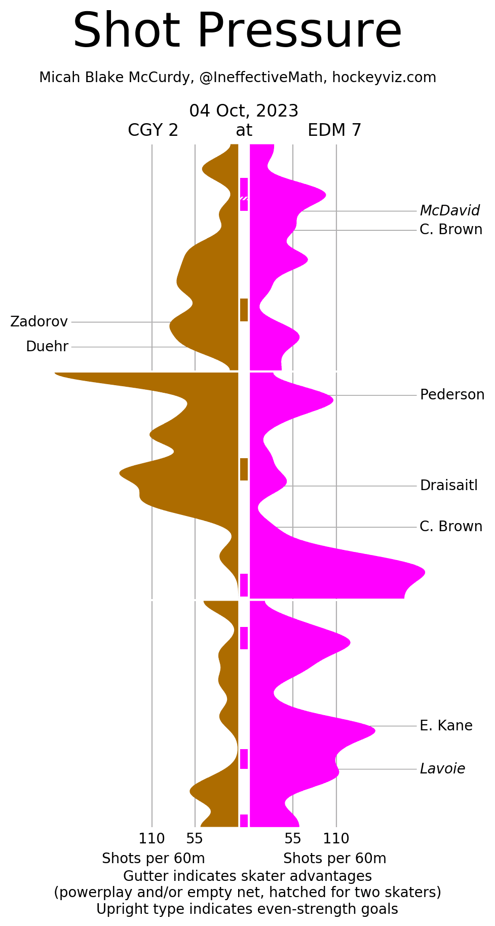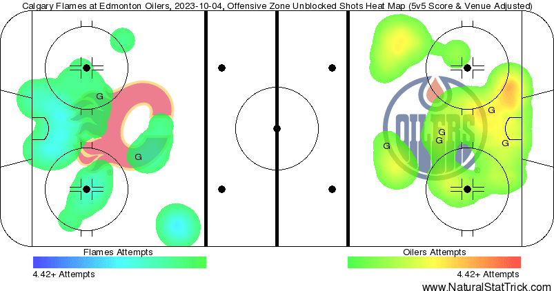 (Stats compiled from Naturalstattrick.com // Game Score from Hockeystatcards.com // xG and Under Pressure charts from HockeyViz.com // Game Flow and Shot Heatmap from NaturalStatTrick.com)