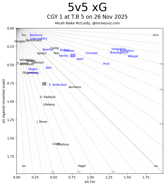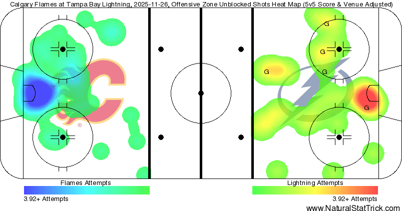 (Stats compiled from Naturalstattrick.com // Game Score from Hockeystatcards.com // xG and Under Pressure charts from HockeyViz.com // Game Flow and Shot Heatmap from NaturalStatTrick.com)