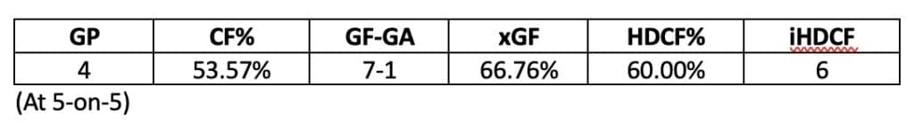 Honzek has put up one goal and five assists in four preseason games which is tied for second in the NHL as of Oct. 2. His counting stats are great, but the underlying numbers are even more impressive.