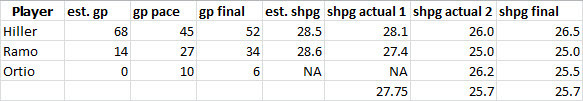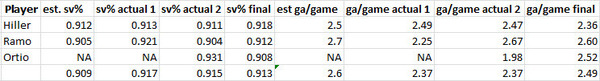 Estimates were fairly close here to start, but Hiller and Ramo had better seasons than expected as well.