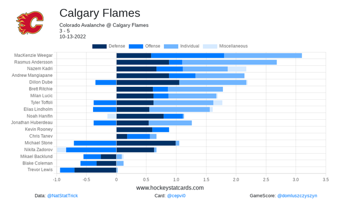 #NHL GameScore Impact Card for Calgary Flames on 2022-10-13: #CofRed