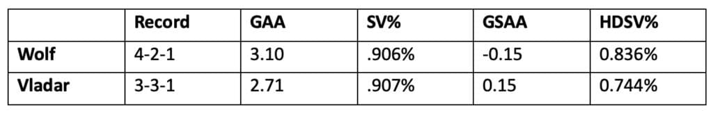 Vladar has been solid, a steadying presence in the crease. And his numbers are impressive when you take into consideration the incredibly difficult opponents he’s faced. He’s faced Vancouver, Edmonton (x2), Carolina, Vegas, and New Jersey. That’s a murderer’s row of offensively gifted teams. And he’s held up just fine in those games.