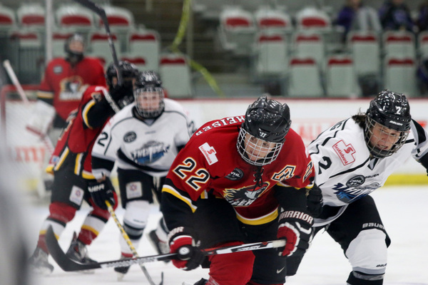 With two games over the weekend, the Inferno had two cracks at getting the one win they needed. Unfortunately, on Saturday’s game, they fell behind almost immediately due to Rebecca Vint’s 18th of the season, just 2:24 in. Jamie Lee Rattray soon made it a 2-0 advantage for the Thunder, but the Inferno’s Blayre Turnbull was able to draw Calgary back within one.