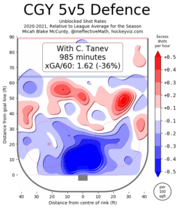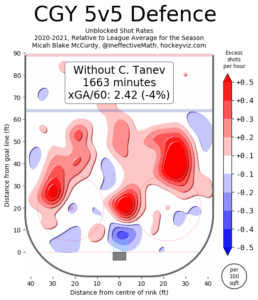 All valid concerns based on the data available and his more recent history of play in Vancouver. Chris Tanev didn’t care, he came to Calgary to work. He worked so hard he ended up recording the second best even strength defensive impact of any defenceman in the modern analytical era (2007-08 to 2020-21) and clearly led this season leaving second place in the dust – all while playing half the year with broken ribs.