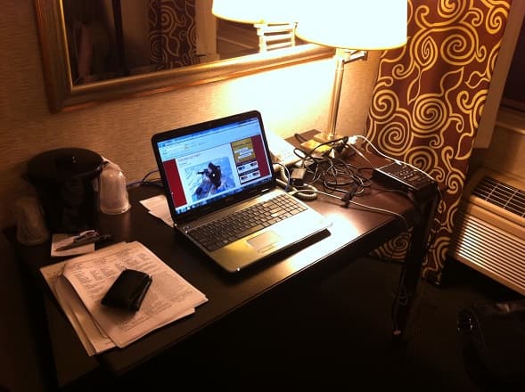 What you’re looking at is the piece de resistance of what I like to call the "Pat Steinberg Super Sex Suite" (stealing from a former radio colleague) at the beautiful Holiday Inn Express in downtown Minneapolis, Minnesota. Actually, this is my sad office in Minny, as I’m staying here for the first night before joining the rest of the media at the Hilton one block away. Wednesday was fairly vanilla in the Twin Cities, but Thursday will be busy. A reminder: FlamesNation radio will be on the air on Sportsnet Radio FAN 960 starting at 6 pm Thursday night with Kent and I. We’ll be using live comments on the site to drive the conversation and you can also interact on the phones and on Twitter.