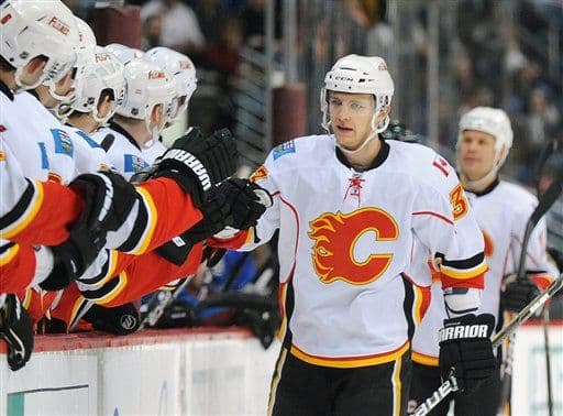 It sounds like we’ll see a little bit of a tweak to Calgary’s lines in comparison to the ones they would have gone with Friday had they had 12 forwards. David Moss will move to the top line centering Jarome Iginla and Alex Tanguay while Rene Bourque will move down to play with Curtis Glencross and Olli Jokinen. Putting Moss with the two big guns might be the best thing for them, becuase regardless of points, Tanguay and Iginla haven’t been at their best the past five games or so. Moss, on the other hand, has been out of his mind for about three straight weeks, and in my eyes, he’s been Calgary’s best forward over about a three month span. Here are lines and pairings tonight:
