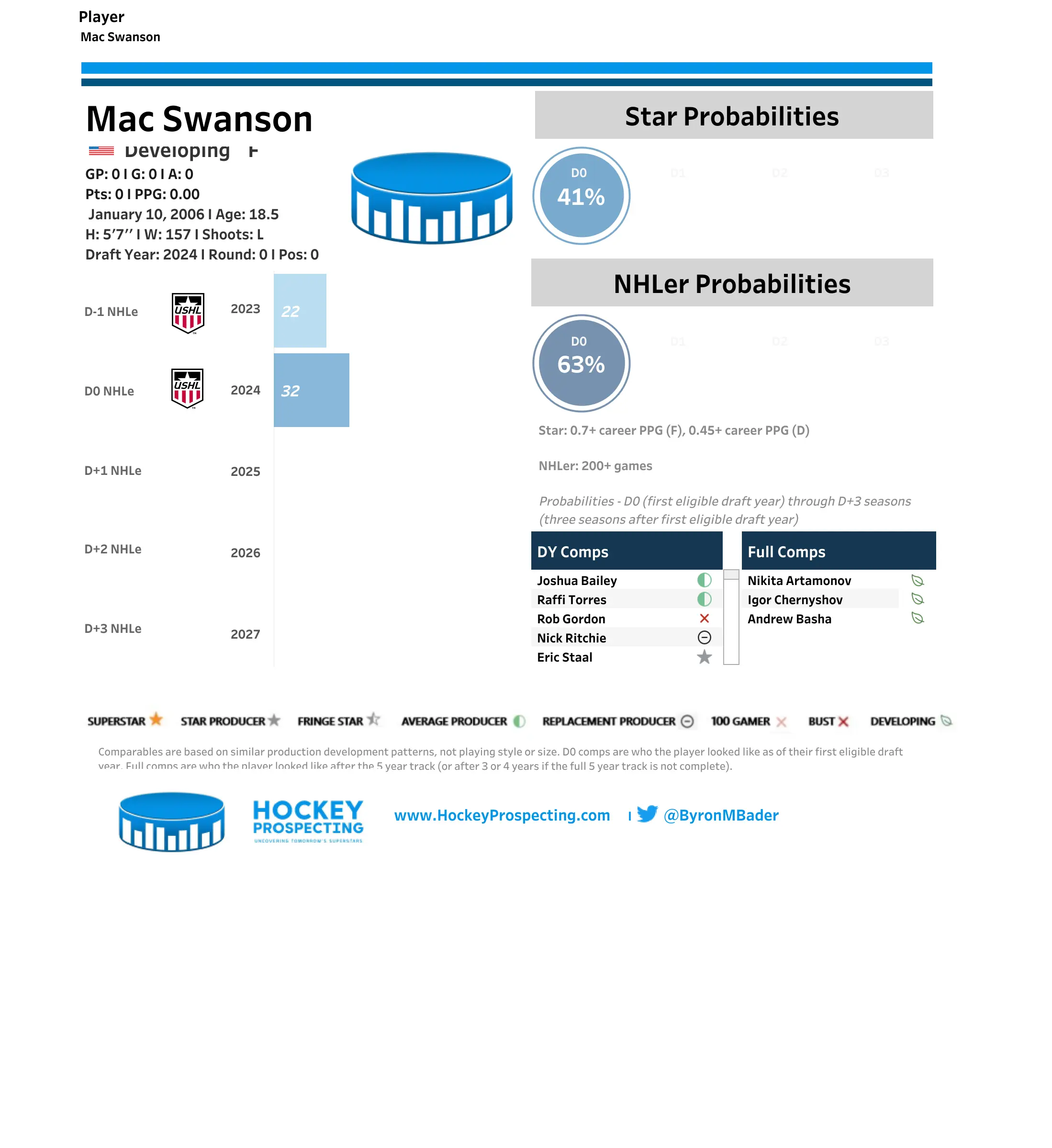 Mac Swanson – C – 5’ 8” – 157 lbs – Shoots: Left – Ranked #152 NHL Central Scouting (NA), #78 Daily Faceoff