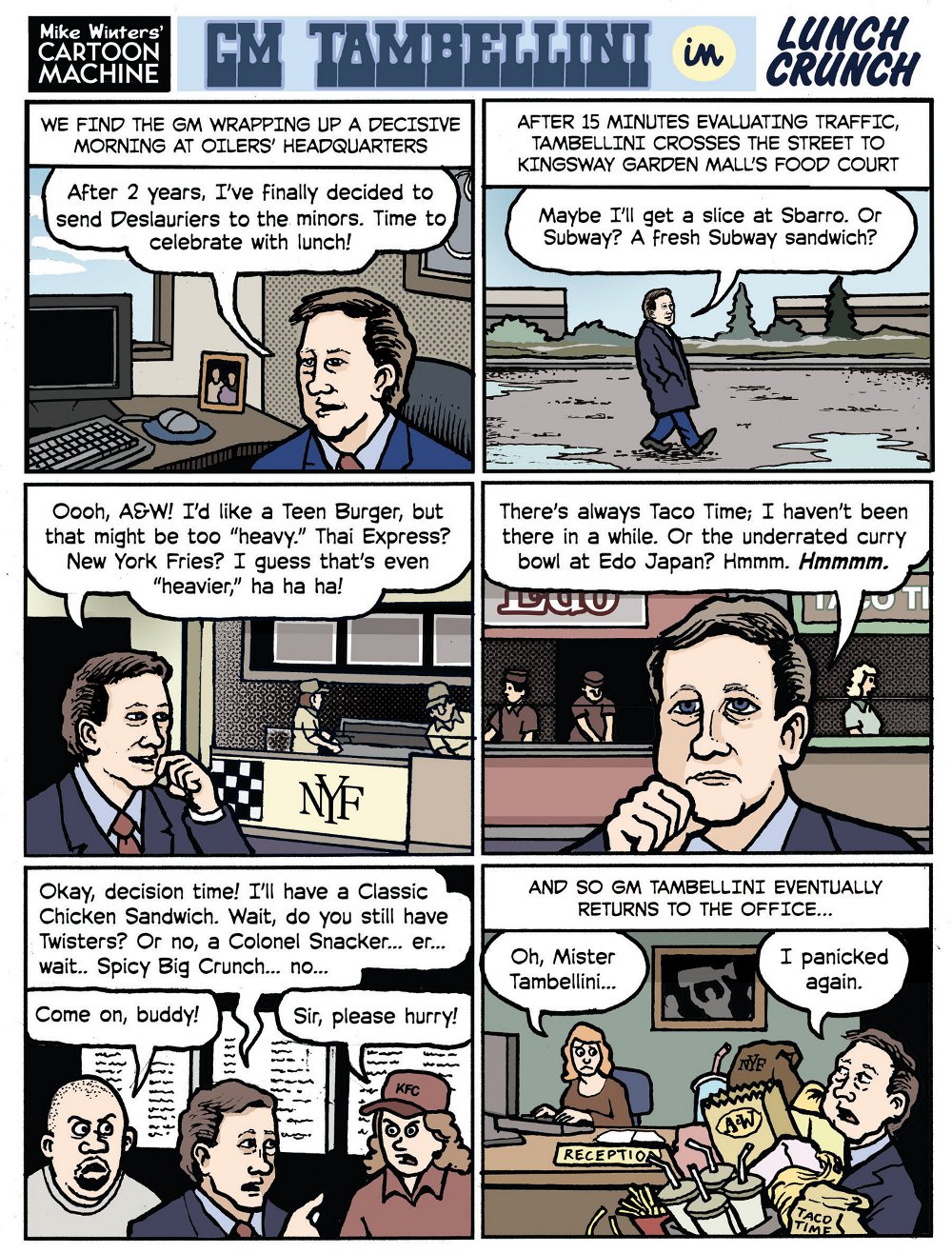 Robert: Start with an assessment of who they’d actually like to keep for next season, and that includes the GM and coaching staff. I would hope that whoever would be tasked with that assignment might manage to review matters with alacrity, or at a minimum slightly more alacrity than Steve Tambellini. Once the ownership decides who is going to pilot the ship, see they can unload some of the deadwood, and I do hope that people understand that they won’t get rid of all of it via trade. As long as Daz is in charge, I don’t expect that much change, but one can hope.