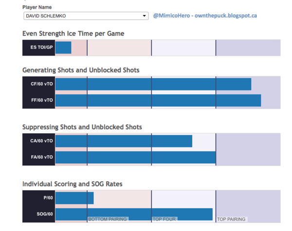 Schlemko has always been a third pairing kind of guy, but he’s consistently suppressed and generated shots at an excellent rate in that role. For next to nothing, the Flames could lock in a very good third pairing option in Schlemko for the next year or two.