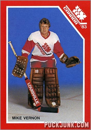 In fact, Vernon crushed it so hard in junior that even when his team was bad, he was good enough to have other teams crave him. Despite winning the MVP, Top Goalie award, and named a League All-Star in 1981-82, his Wranglers managed to rope themselves an early golf season. But not Vernon. Due to junior rules that somehow existed at the time, teams could loan players to the champion team going off to play in the Memorial Cup tournament.