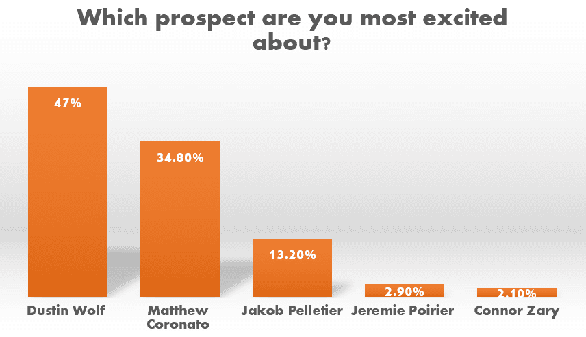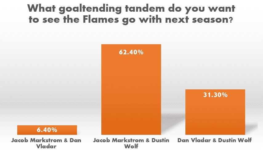 This was one of the most interesting results from the survey. 93.4% of you want to see Dustin Wolf on the Flames roster next season. Based on the reaction from the fans, it would be a failure for the Flames to go into next season with both Jacob Markstrom and Dan Vladar on the roster.