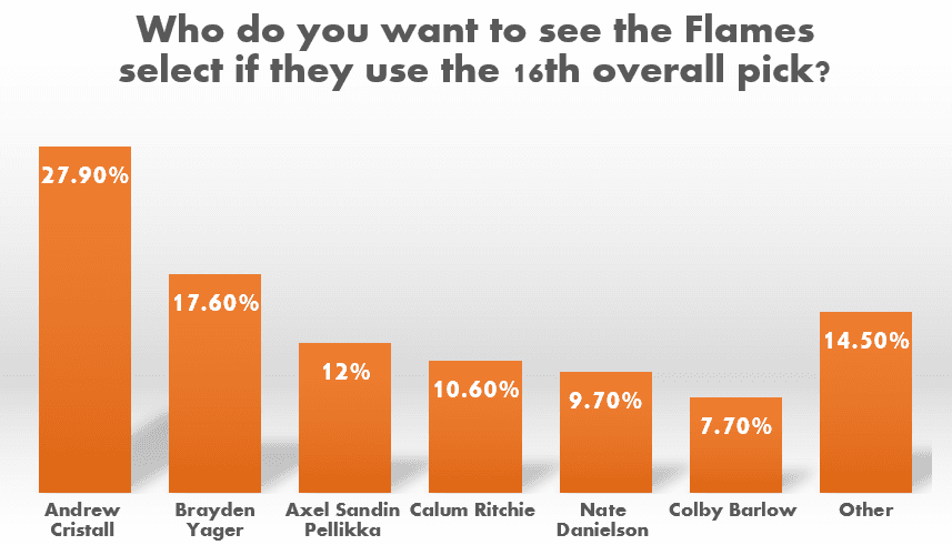 The Flames are going to have a lot of players to choose from at pick 16. The winner in our poll is Andrew Cristall of the Kelowna Rockets.