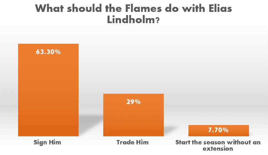 The fans want Elias Lindholm back in red and white next season and beyond. 63.3% of fans want Conroy to sign Lindholm to a long term extension. It’s hard to argue against that as Lindholm has been one of the Flames best forwards since coming over in a trade in 2018. He is good for 60 points a year. He is a great defensive player. And he plays on the first unit of both special teams. The only issue is that he will be 30 years old on Dec. 2, 2024, which will be in the first year of his potential eight year extension. That’s a lot of money to be paying someone well into their 30s.