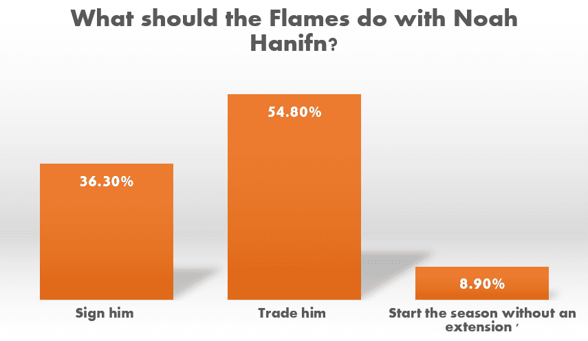 54.8% of Flames fans want to see Noah Hanifin traded this off-season. Elliotte Friedman, Pierre LeBrun, Pat Steinberg and other NHL insiders and reporters have all indicated that it is looking more likely than not that Hanifin will be traded this summer. And over half the fan base would be OK with that happening. The Flames should be able to receive a large return in a Hanifin trade. 26 year old, top four defencemen are rare commodities in today’s NHL.