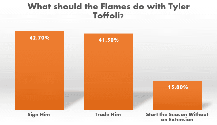 We have our first split among the fan base. 42.7% of the fans want to see Toffoli signed to an extension. He is coming off an incredible season where he put up a career high in goals and points. He has also openly discussed how he wants to stay in Calgary and wants to sign an extension.