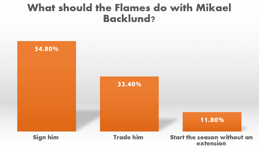 54.8% of the fan base wants to see Mikael Backlund retire as a Calgary Flame. If the Flames were to sign him to an extension, it would likely come with the captaincy. Having someone play their entire career would be pretty cool as it is something that hasn’t happened since the early 1990s when Jim Peplinski played his entire career in Calgary.