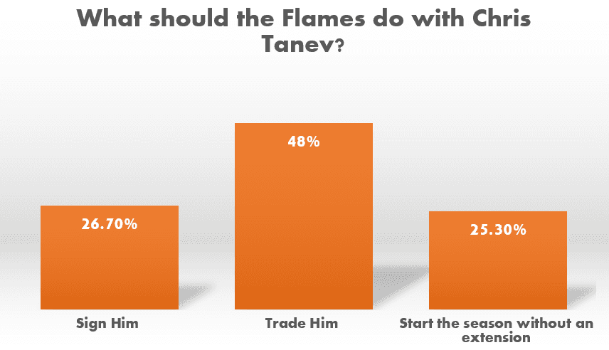 But 48% the fan base thinks that it might be time to move on from the 33 year old defenceman. Tanev has struggled to stay healthy throughout his career including last season with the Flames. It might be time to get some assets for the veteran.