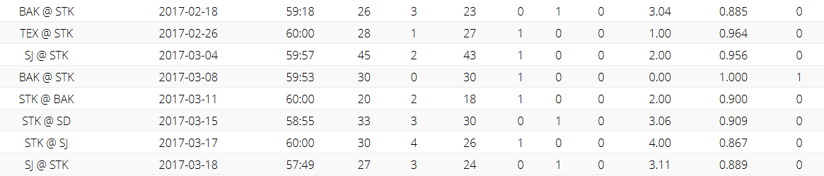 Since then, it’s been concerning. His first full season with the Heat was productive (52-15-20-35) but not good enough to warrant a serious NHL look. Some of the numbers then had been heavily influence by a lack of ice time, as his estimated per 60 stats suggested that he was a first liner with second line minutes. It wasn’t unthinkable that he could come to camp flying under the radar and snag himself a spot.