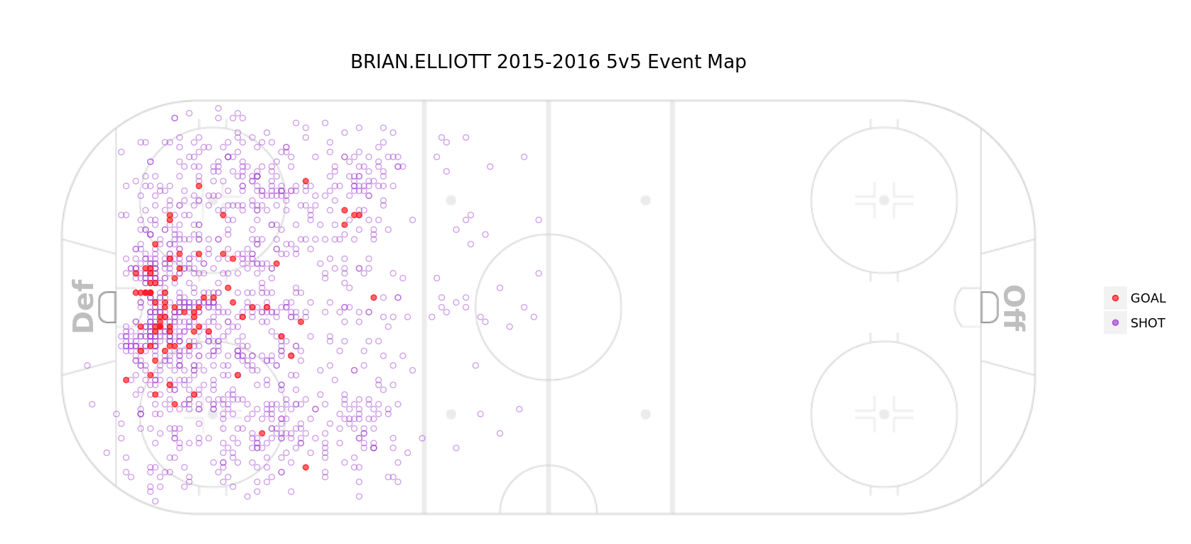 Those types of goals will happen – but for the Flames this season, the slot seems to have been a more concentrated area to score on Elliott. That’s partially on him, but may be on his defence, as well (his high-danger SV% in 2015-16 was 86.22% – an over 7% increase. His low-danger SV% was about the same between seasons).