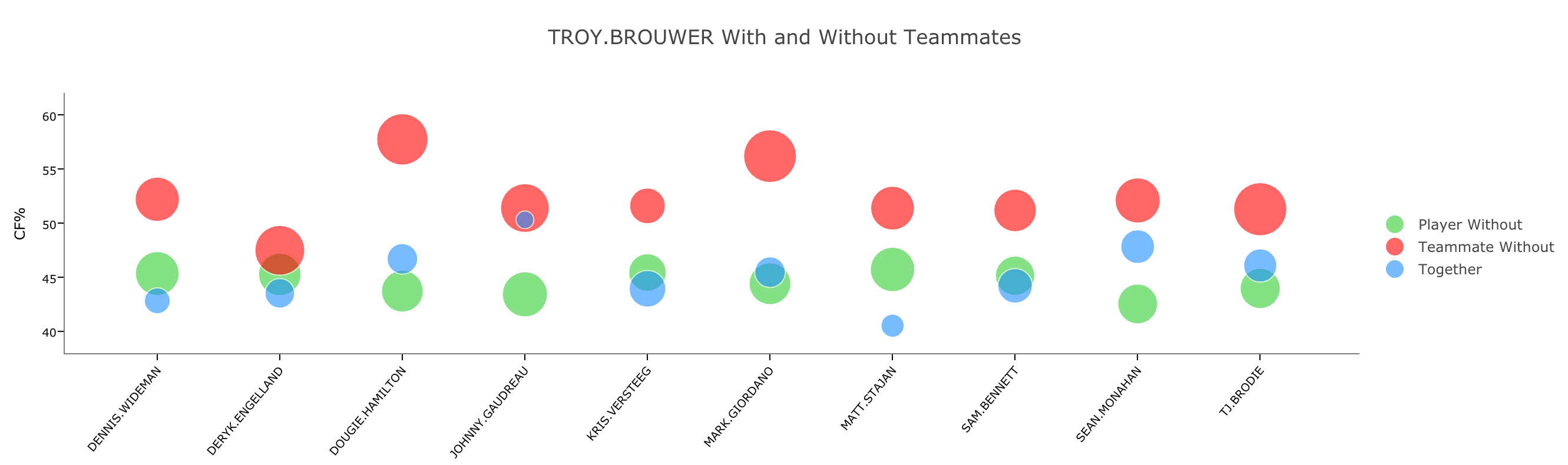 Almost every player Brouwer spent time with saw their underlying numbers plummet, while everyone also improved immensely away from him. Often times WOWYs can be ambiguous and somewhat sample/circumstance dependent, but there’s only one real conclusion to draw here.