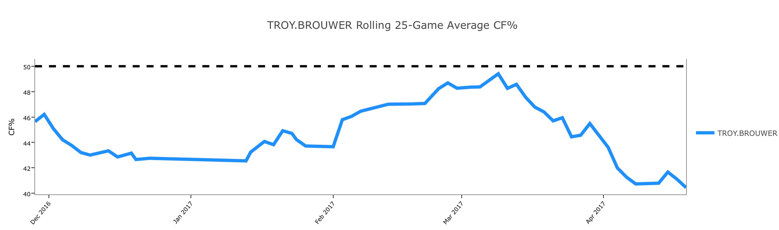 While I considered Brouwer’s signing a bad bet, I didn’t think it would go this bad, this quickly. It’s no hyperbole to call Brouwer’s on-ice impact “disastrous” in 2016-17.