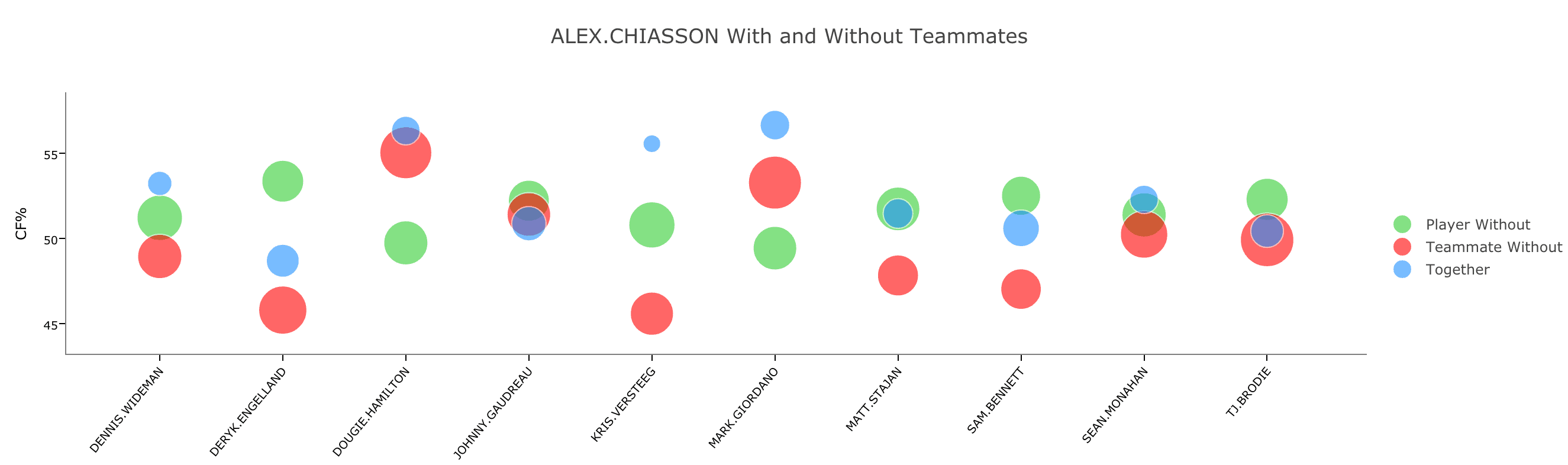 Chiasson’s only crime when playing alongside Gaudreau and Monahan was not being particularly offensively gifted. That’s it. He didn’t really impact them much, good or bad, any other way – he was a warm body who could, at least in part, keep up.
