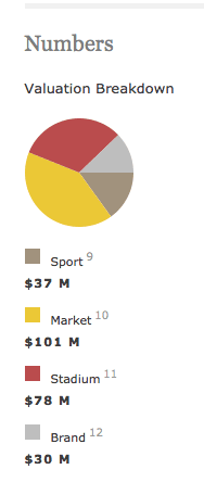The "sport" segment is the value attributable to the revenue shared by all the team sin the league while the "market" and "brand" segments are the values of, well…the Calgary market/fanbase and the power of the Flames brand respectively.