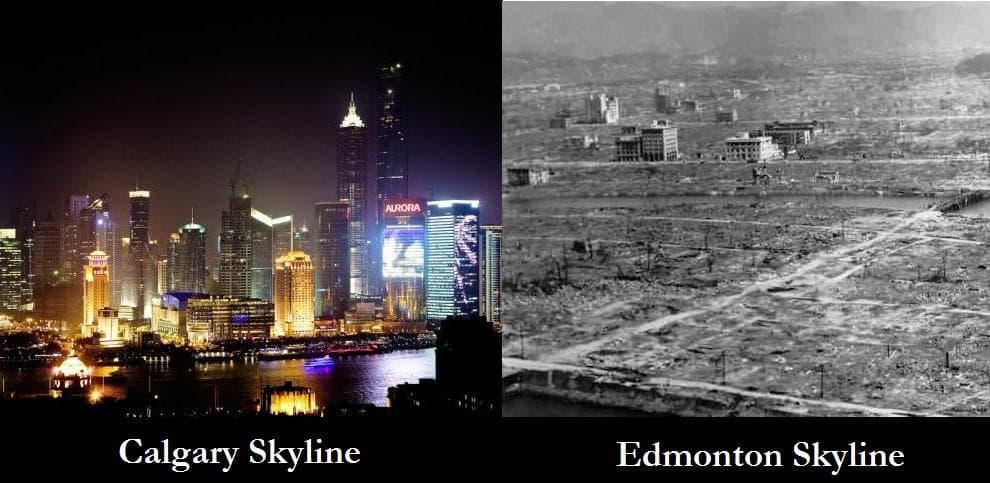 Oooooh. We get it Calgary. You are the rich neighbours to the South with all of your money and power and fancy high rise buildings. Everyone understands that at some point in the mid 90s all of our businesses picked up and moved down Highway 2. Well guess what? We were like 8 years old when that happened. Didn’t care then – didn’t care now.