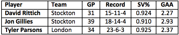 This conversation really does come down to Gillies, Rittich, and Parsons, so to frame things a little better, let’s compare what each goaltender did last season: