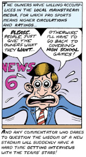 With a few, rare exceptions, the local mainstream media isn’t going to help you think critically on this issue. At best, the MSM will accept the frame and implicitly drive the public towards the “this is a negotiation” perspective, even when the project is clearly still merely a public subsidy for a profit seeking entity.