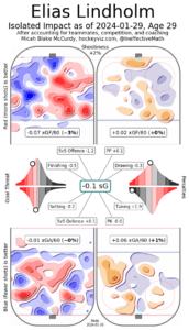 In addition to that visual, here is his isolated impact from Micah Blake McCurdy’s HockeyViz site: