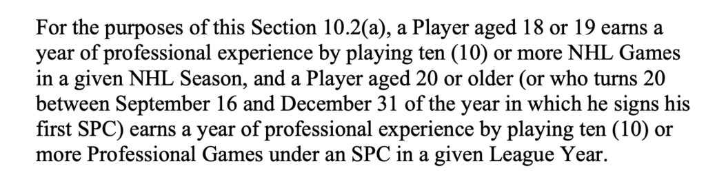 When Välimäki played zero professional games in 2019-20, he didn’t get credit for a professional season under any of the CBA’s various measures: free agency time, pensionable service, and waiver eligibility. (This was the part that’s a bit vague in the CBA and required interpretation, as what counts as a pro season under the waiver rules isn’t specified explicitly.)
