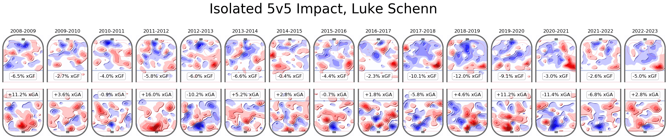 Anyway, here are the offence and defence impacts from each and every year of Schenn’s long career: