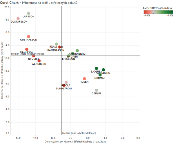 Via The Hockey Ninja, here is Team Sweden’s corsi chart (minus the game against Russia, which isn’t going to do any of them any favours):