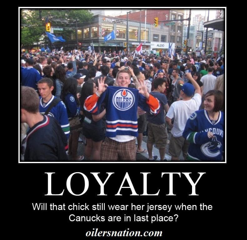 The Vancouver Canucks are two games up in the Stanley Cup Finals. The Winnipeg Jets are closer to taking the ice and potentially making them selves an instant contender for a playoff run. And still stalwart Oilers fans like the one above find a way to continue to represent.