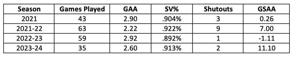 Markstrom is the type of goalie to have some wild swings in his performance. 2021-22 and 2023-24 he looks like a guy who could win Vezina Trophies. In the 2021 and 2022-23 seasons he was a below average goalie with zero value on the trade market.