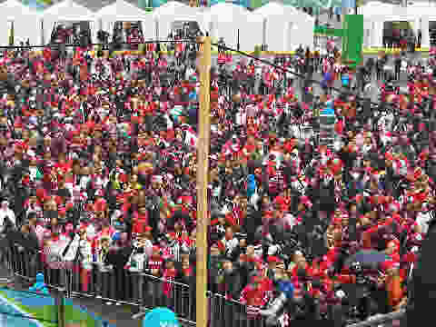 "All of the fans at the games have been awesome but the hockey fans are hands down one of the craziest things we have ever seen. Everyone has a Canada Jersey, t-shirt, hat or jacket it seems – it has been really cool to see the Sea of Red everywhere we have gone."