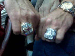 "Anyway, we sat next to Illitch’s 2 sons and daughter-in-law, and her husband. My buddy was talking with Mrs. Illitch the whole game and afterwards she totally gave him her cell number and told us to come see a game in Detroit sometime. AWESOME! In addition, Mike showed us his two Stanley Cup rings. AWESOMER!"