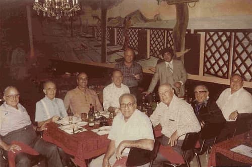 We had treated ourselves to a couple of the Olympic Wobblies during the match and we sidled up to a table of guys – as depicted in an unrelated photo from the 1970s above – who were wearing various Team Canada gear and should have looked more excited than they did. We rolled up, Bud Light in hand and asked them about the results of the game.