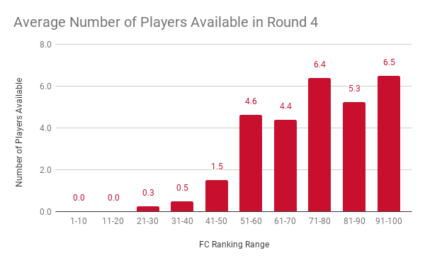 Going even further down the rankings chart, the average number of players who slip down to the fourth round increases.