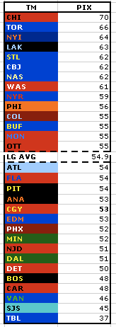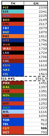 What I did not take into consideration was whether the players played those games and scored those points, or even made the NHL in the first place, with the team that drafted them. I also didn’t weight it for the number of first-round picks that have made the NHL versus the number of seventh-round picks, or anything else like that. Those five categories above are what I explored.