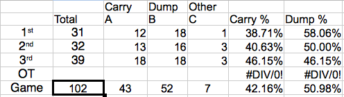 Away | 1 | 19:33 | Ferland | 4 | 17 | 19 | 21 | 31 | 42 | 1 | 4 | 6 | 32 | 79 | 86 | 5v5 |
