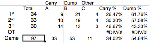 Home | 1 | 8:58 | Ferland | 15 | 29 | 31 | 32 | 60 | 79 | 3 | 11 | 14 | 20 | 36 | 41 | 5v5 |