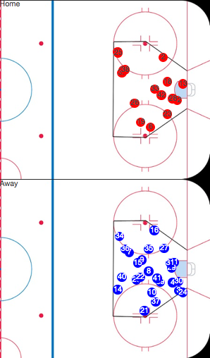 Home | 1 | 9:16 | Clarkson | 3 | 4 | 19 | 24 | 45 | 71 | 1 | 13 | 15 | 24 | 29 | 86 | 5v5 |